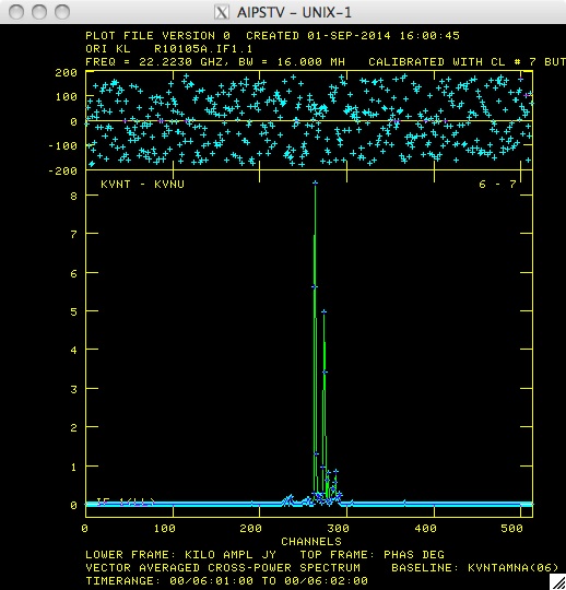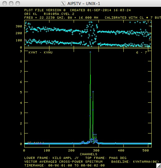 The doppler velocity shifts due to the earth's rotation and its motion within the solar system and towards the local standard of rest can be corrected using the AIPS task "CVEL". When the ARRNAM keyword in the AN table is "VLBA", then "CVEL" assumes that all data have been fringe-rotated to the centre of the Earth and determine the velocity correction accordingly. KaVA follows the VLBA and fringe rotates to the Earth center. Thus, the ARRNAM keyword in the AN table has to be "VLBA". Please run the task "TABED" and give "VLBA" to the ARRNAME keyword in the AN table.2.4 Gibbs ringing effects around a bright and narrow spectral line