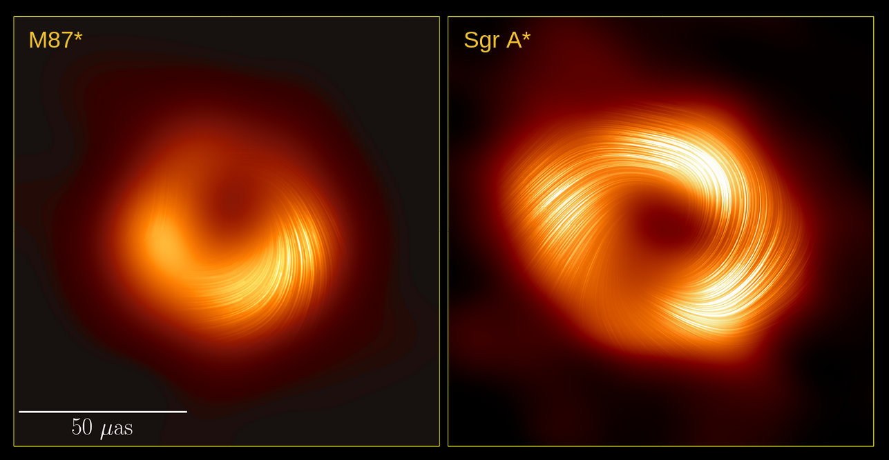 한국의 연구진 및 연구기관들이 참여한 국제 공동연구진이 사건지평선 망원경(Event Horizon Telescope) 관측을 통해 우리은하 중심에 위치한 초거대질량블랙홀의 편광* 영상을 새롭게 공개했다. 공동연구진은 우리은하 블랙홀 가장자리에서 나선형으로 정렬된 자기장 구조를 포착했다.